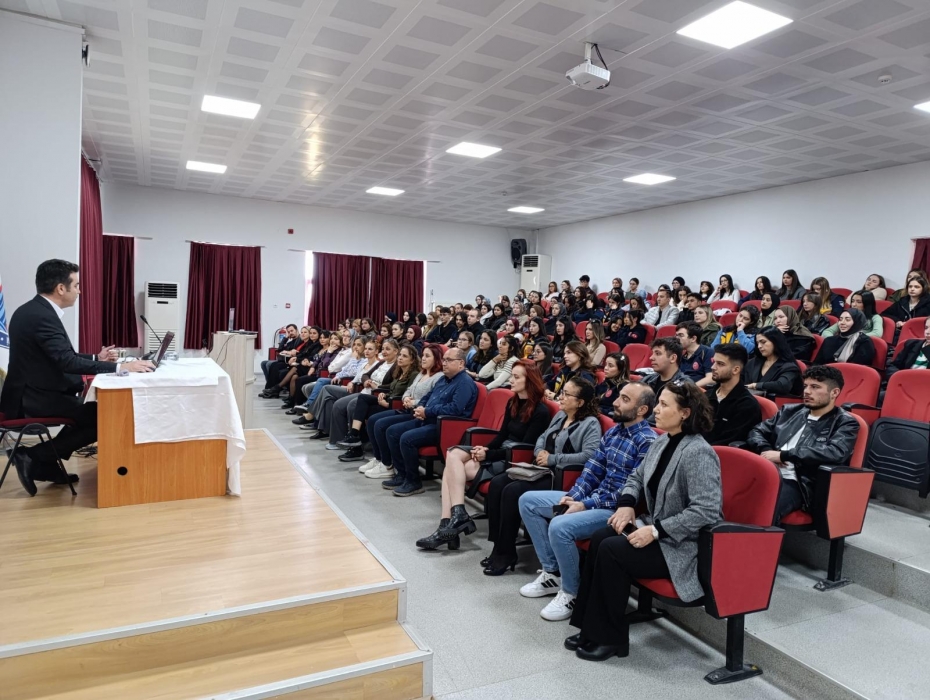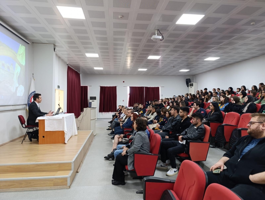 24 Kasım 2025 tarihinde saat 13:00'te Sağlık Hizmetleri MYO Seminer Salonu'nda gerçekleştirilen programa, akademik kadro ve mezun adayı öğrencilerin yanı sıra eski mezunlar da konuşmacı olarak katılım sağladı.